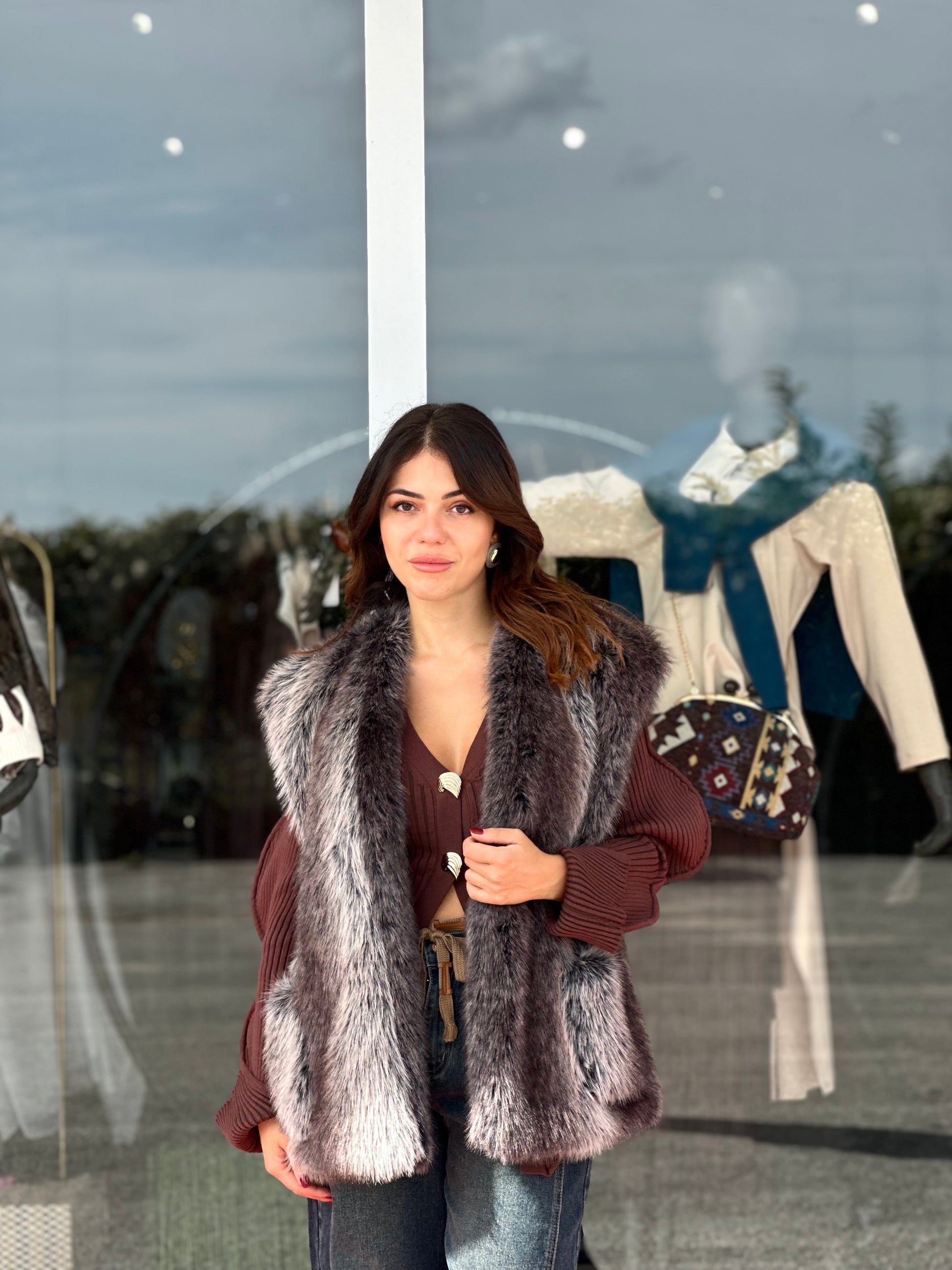 Gilet in ecopelliccia con scialle