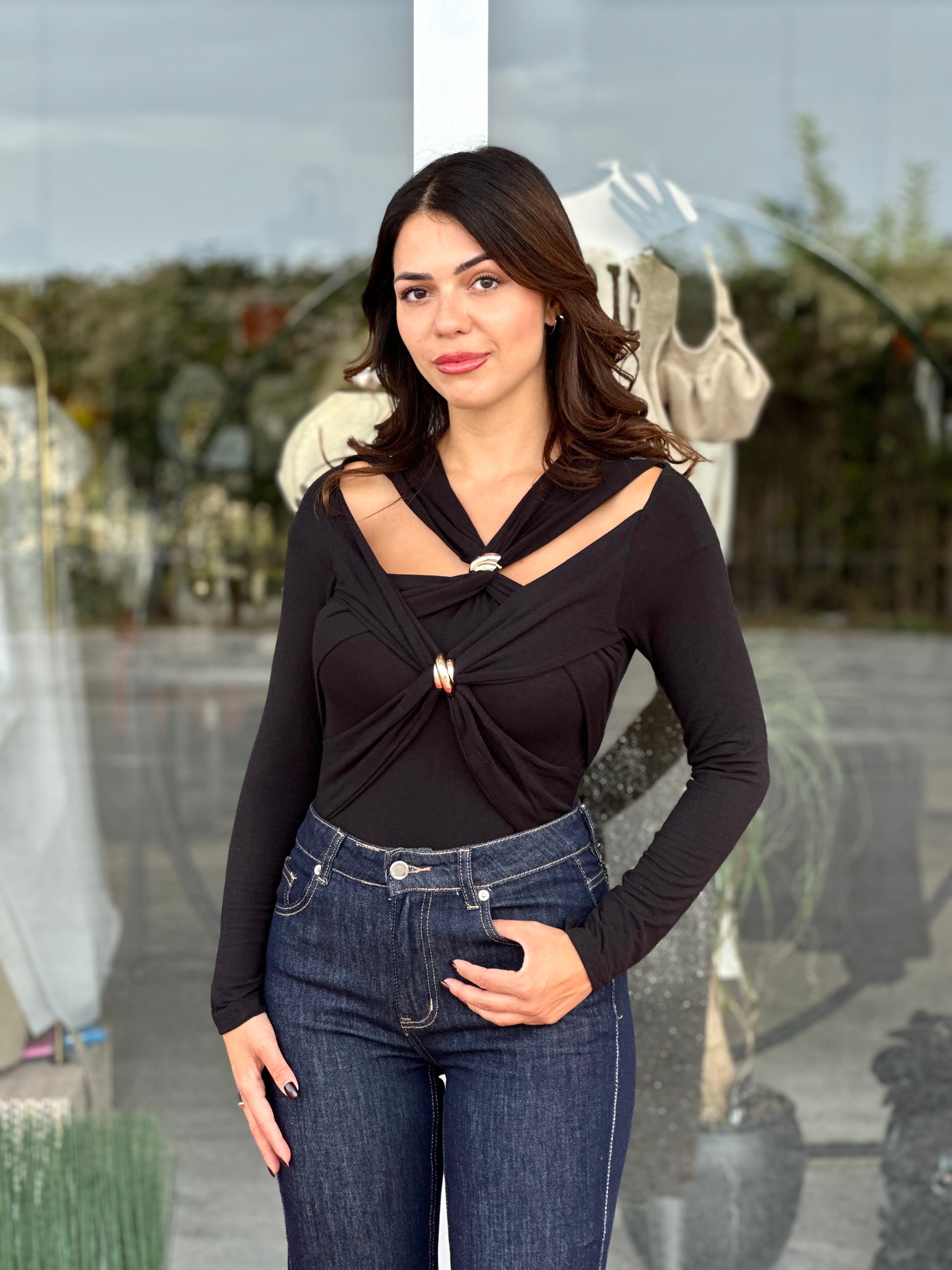 Maglietta in viscosa con dettagli cut out e anelli gold.