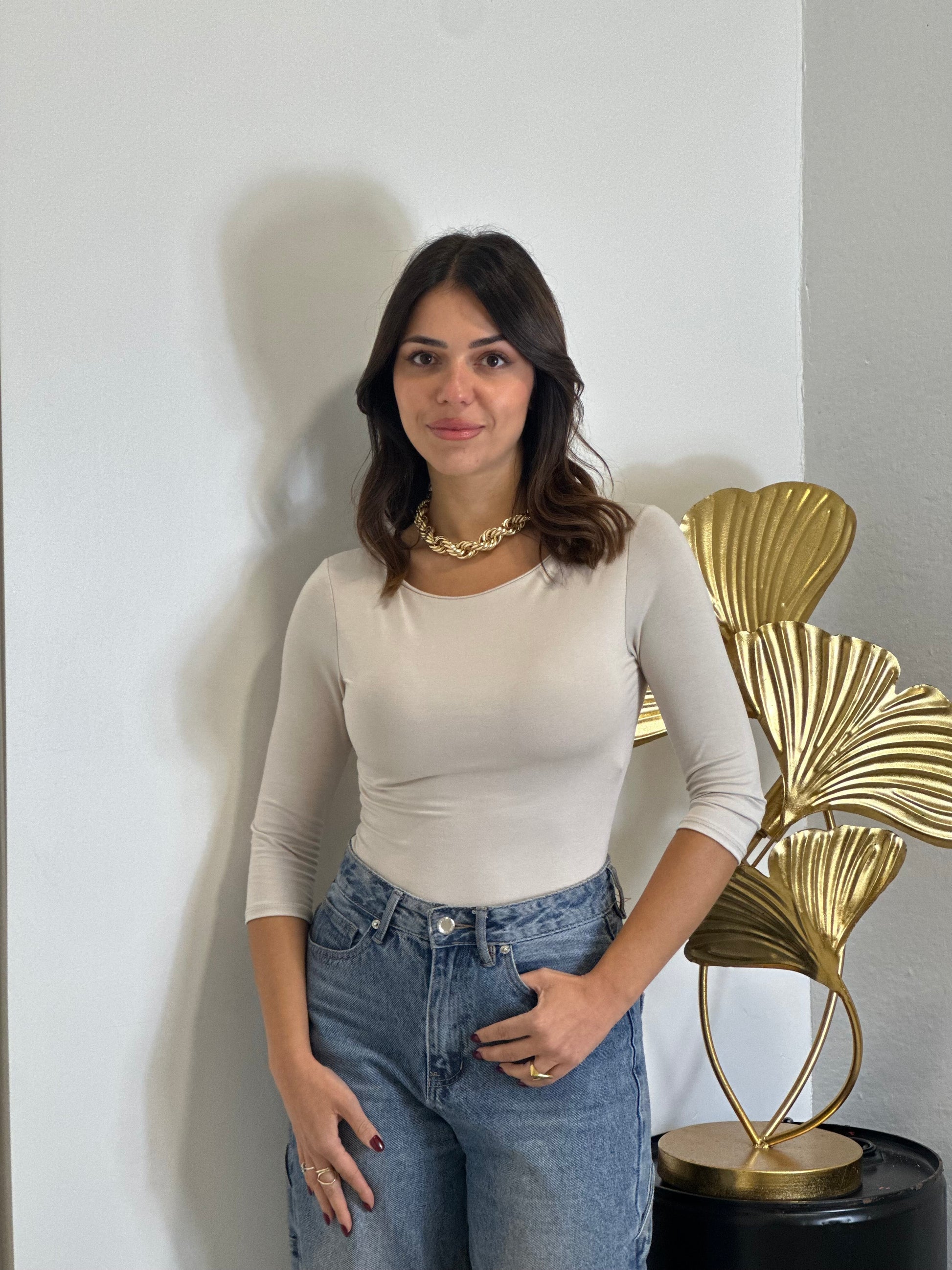 Maglietta in viscosa con scollo a barca e maniche a 3/4.