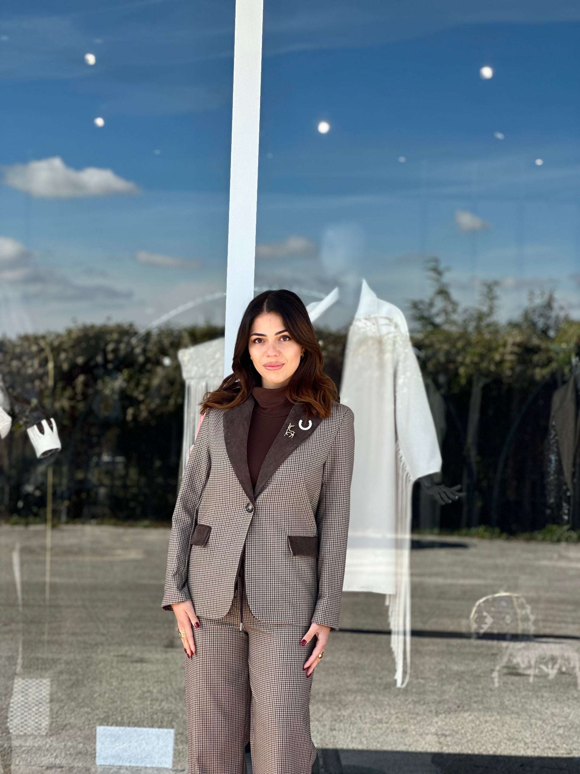 Pantaloni jogger da completo a fantasia pied de poule con laccetti ed elastico in vita.