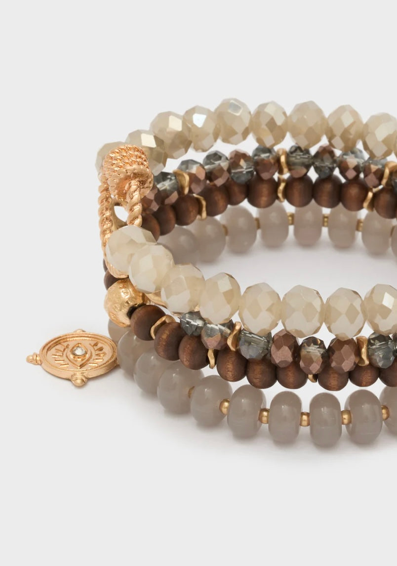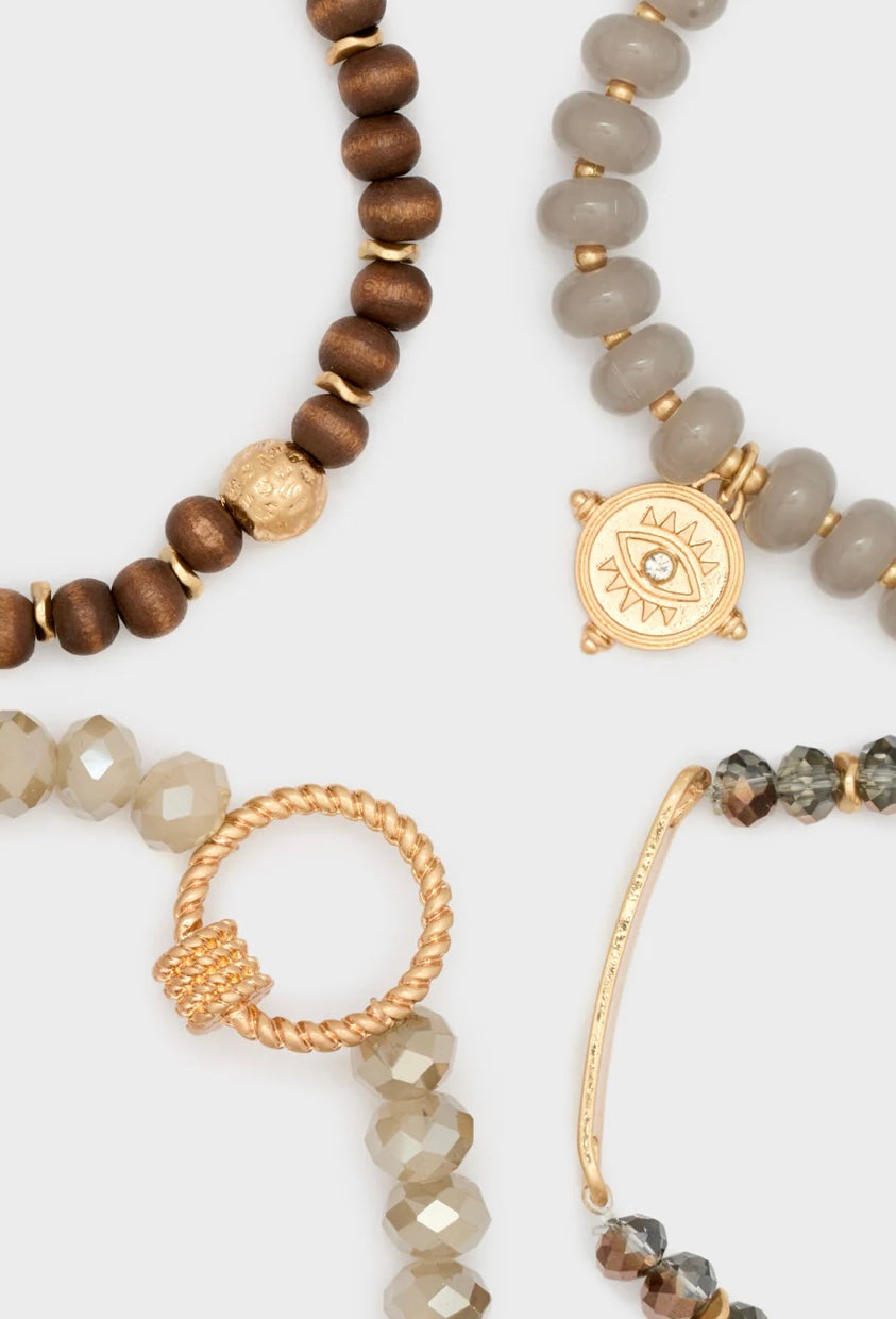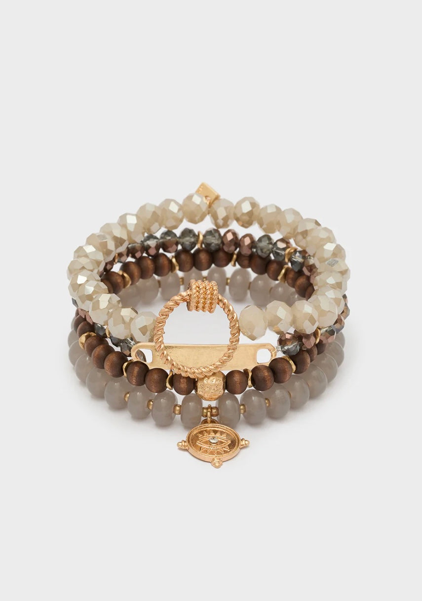SET BRACCIALI ELASTICO OCCHIO BEADS GRIGIO