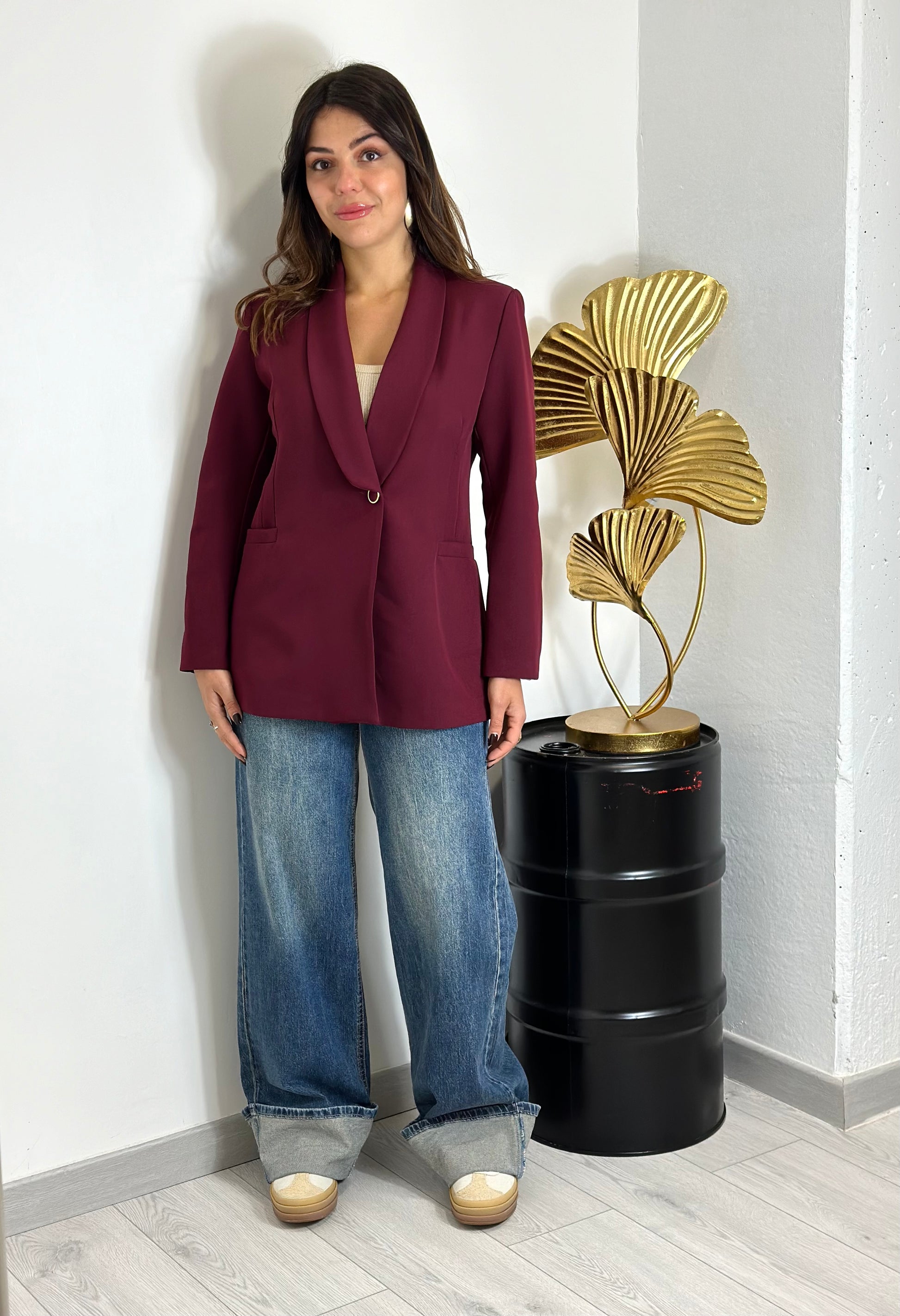 Blazer sfiancato monopetto con chiusura con bottone oro.