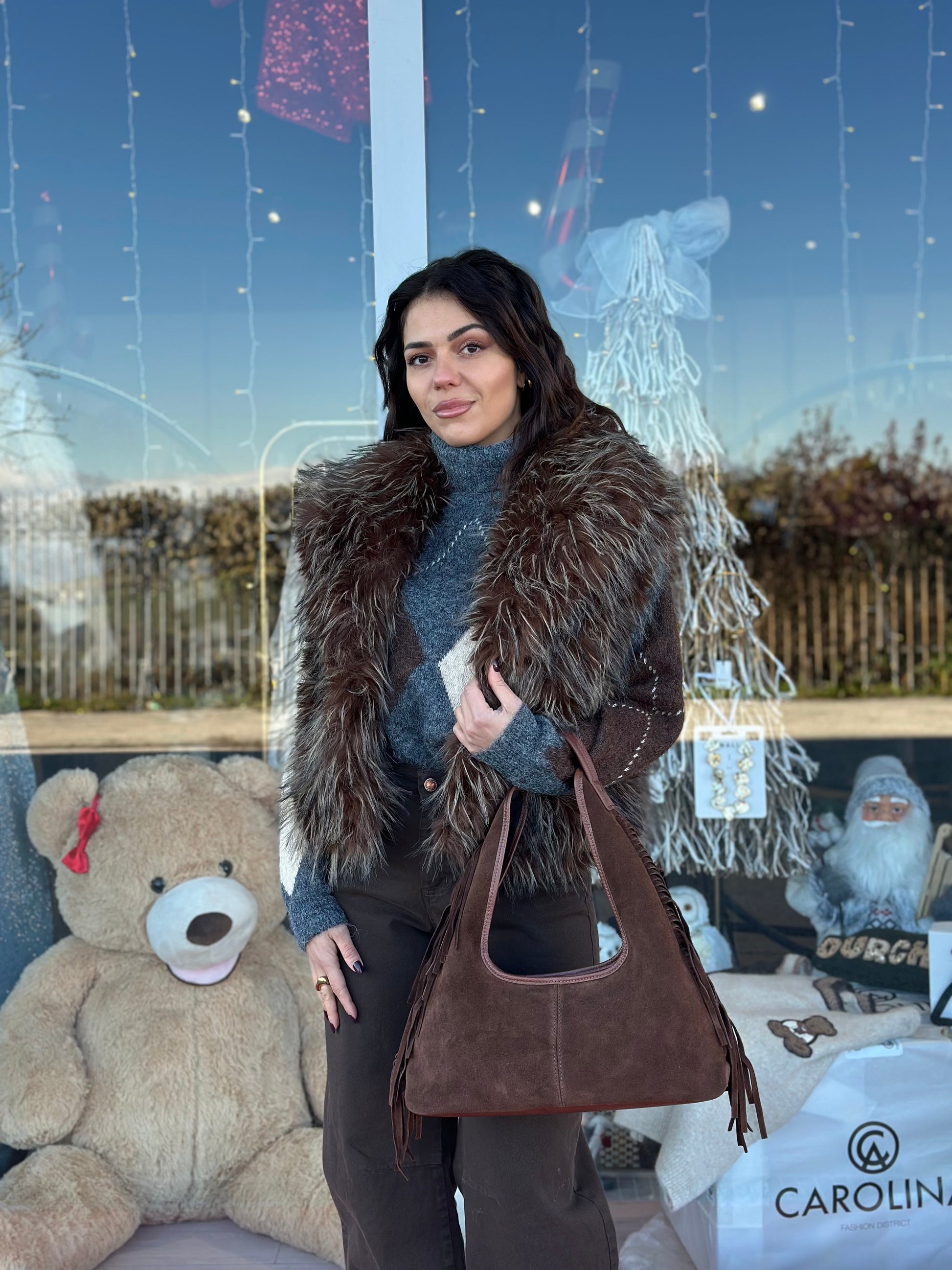 Borsa in camoscio con frange
