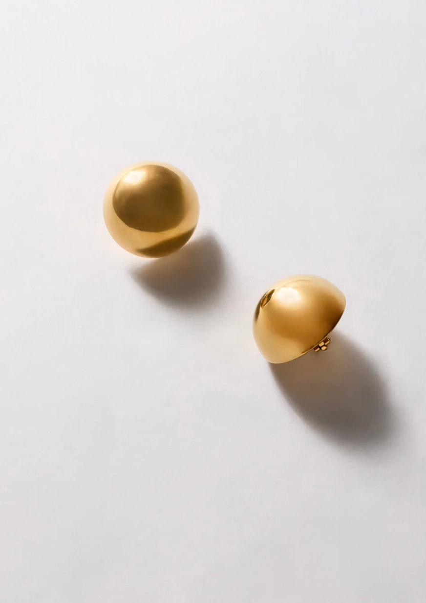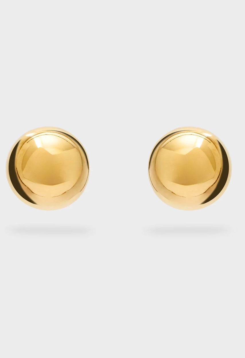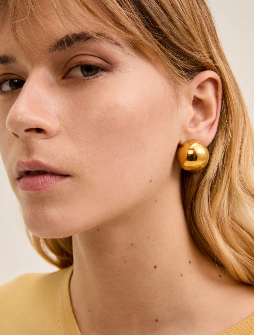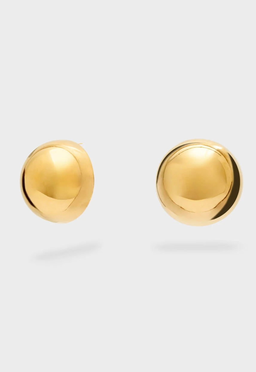 Orecchini a bottone rotondi color oro lucido, minimal e versatili, ideali per un tocco raffinato quotidiano.