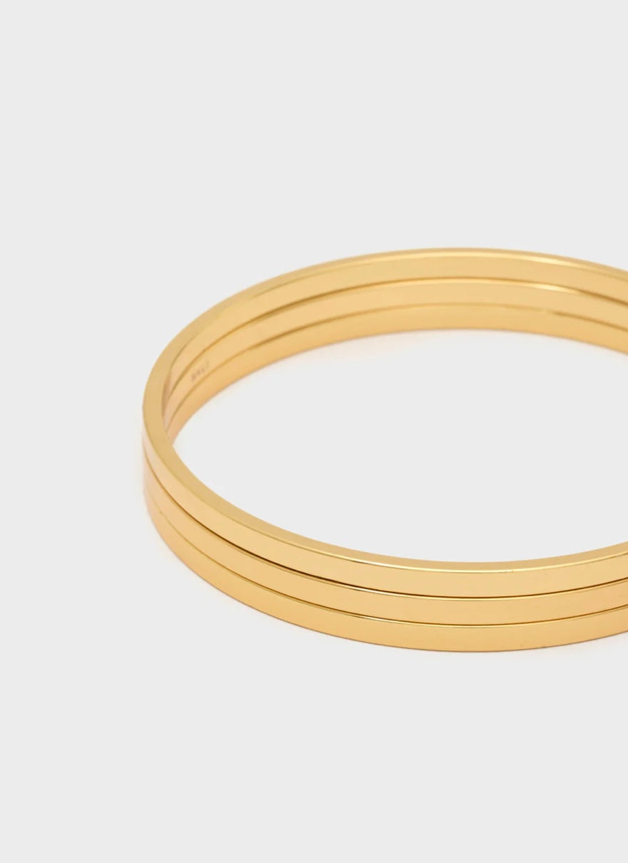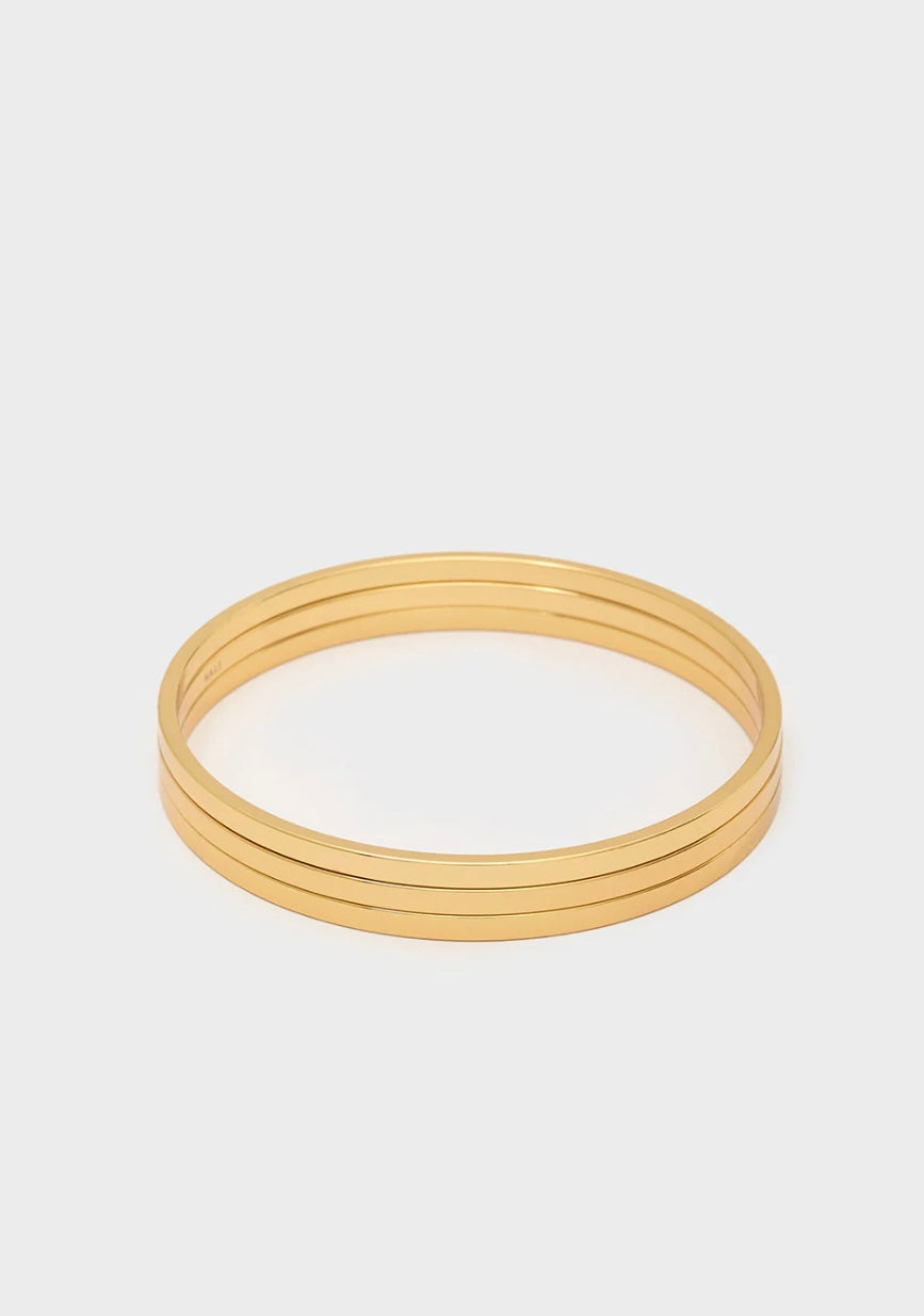 Bracciale rigido composto da tre fasce sottili parallele con finitura lucida. Un accessorio raffinato e minimal, perfetto per arricchire qualsiasi look con discrezione e classe.